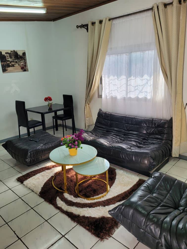 Situé à Akwa, Studio Meublé Glamour avec climatisation dans une barrière.